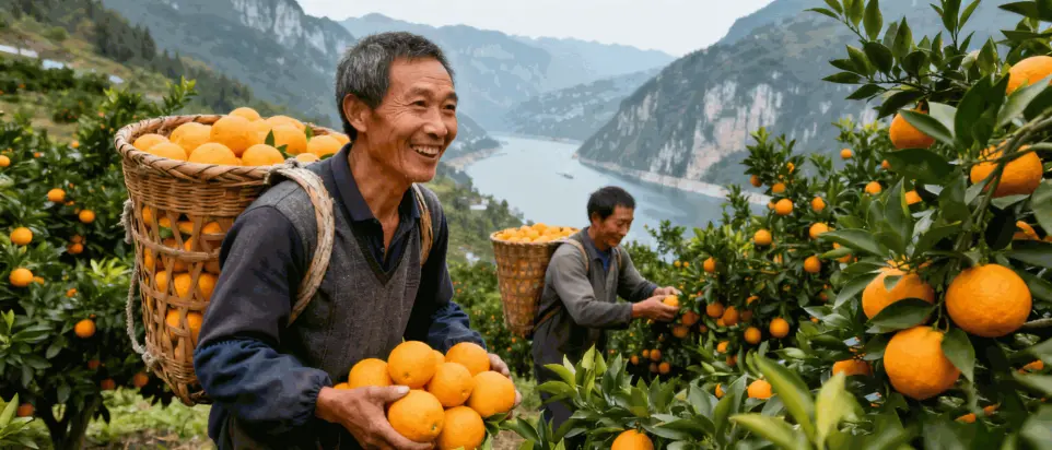 楚王井村地处秭归三峡河谷,为脐橙核心产区。依海拔立体种植伦晚、红肉、九月红,巧用峡江气候,果品优质。